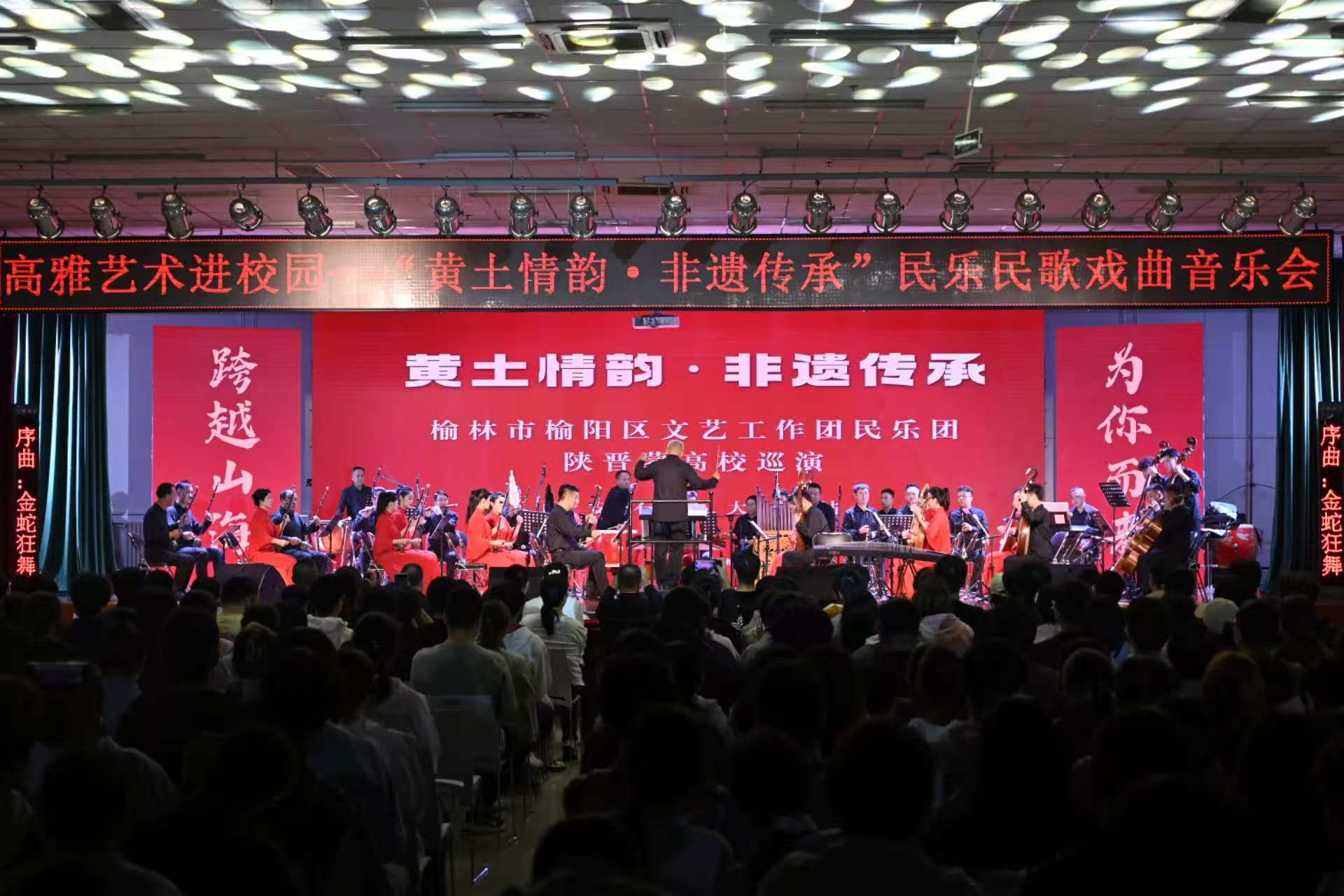 9月22日晚,高雅艺术进校园——“黄土情韵·非遗传承”民乐民歌戏曲音乐会在鄠邑校区腾辉大学生活动中心举办。本场音乐会由榆林市榆阳区文化和旅游文物广电局、榆阳区文艺工作团联合主办,久久久久国产成人精品亚洲综合_亚洲精品国产A久久久久久_精品亚洲日韩国产精品一区二区三区_AV无码久久无码_国产精品国产亚洲精品看不卡_午夜亚洲精品国产乱码久久久人妻_久久久99无码精品一区二区三区_欧美日韩精品国产精品一区二区三区高清免费协办,以“弘扬中华优秀传统文化,推动非遗民乐传承创新”为主题,为现场师生呈现了一场融传统韵味与时代气息于一体的高雅艺术盛宴。副校长赵健,党委办公室(校长办公室)、党委宣传部、校团委主要负责人及500余名师生代表共同观看了演出。
